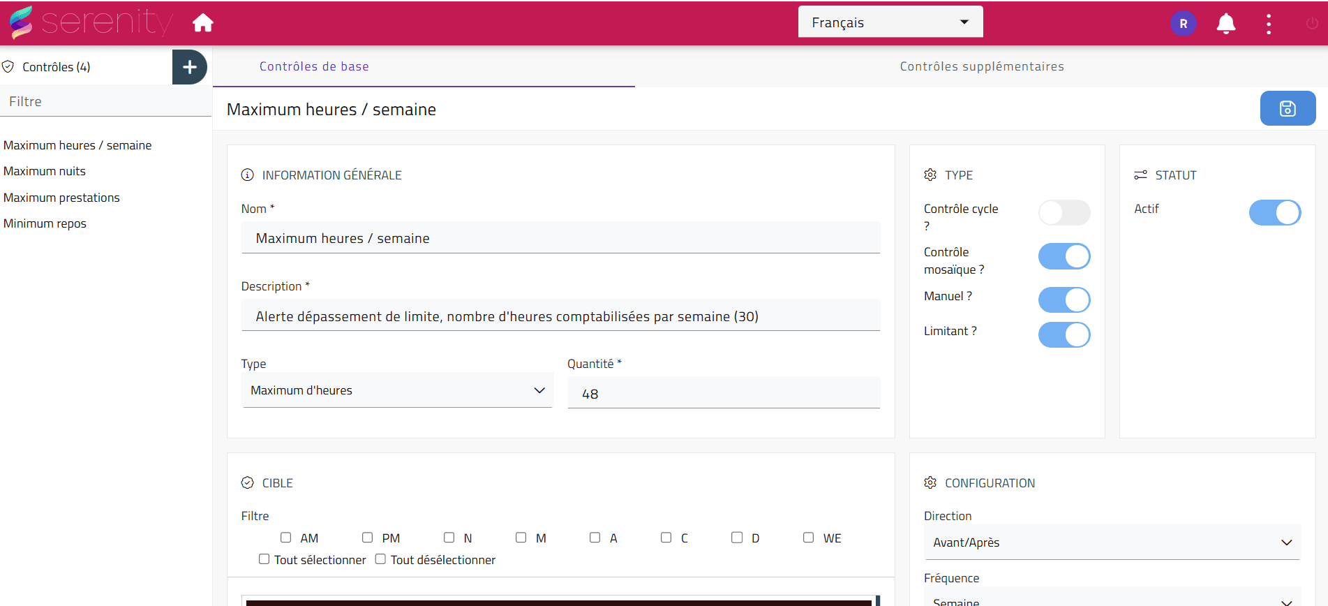 Serenity intègre tous les critères de planification spécifiques de votre organisation, et garantit que chaque planning est conforme aux réglementations en vigueur.